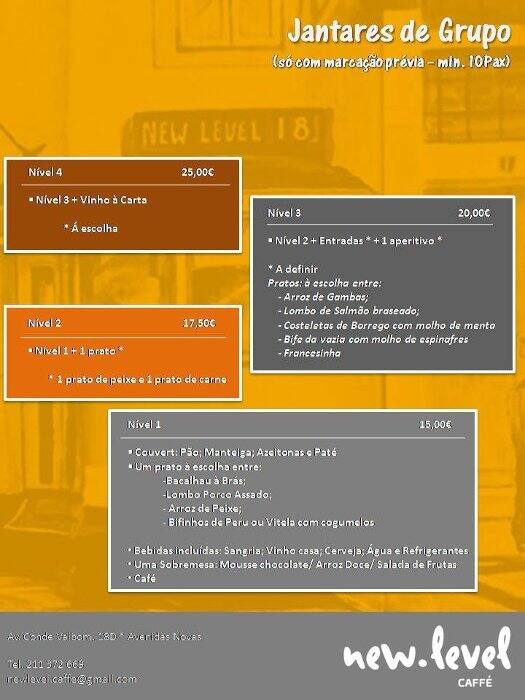 The restaurant information including the New Level Caffé menu items and prices may have been modified since the last website update. All users are free to download and save the New Level Caffé menu files, but can not duplicate or distribute them for any commercial use without prior written permission of the copyright holder.